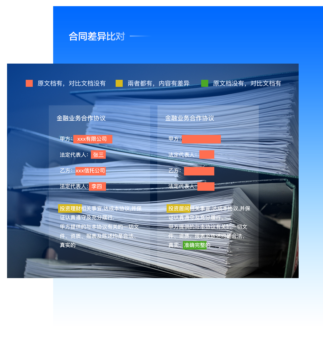 结合OCR与NLP技术,实现对于多格式、多文档的智能比对,减少人工比对投入,助力运营效率提升